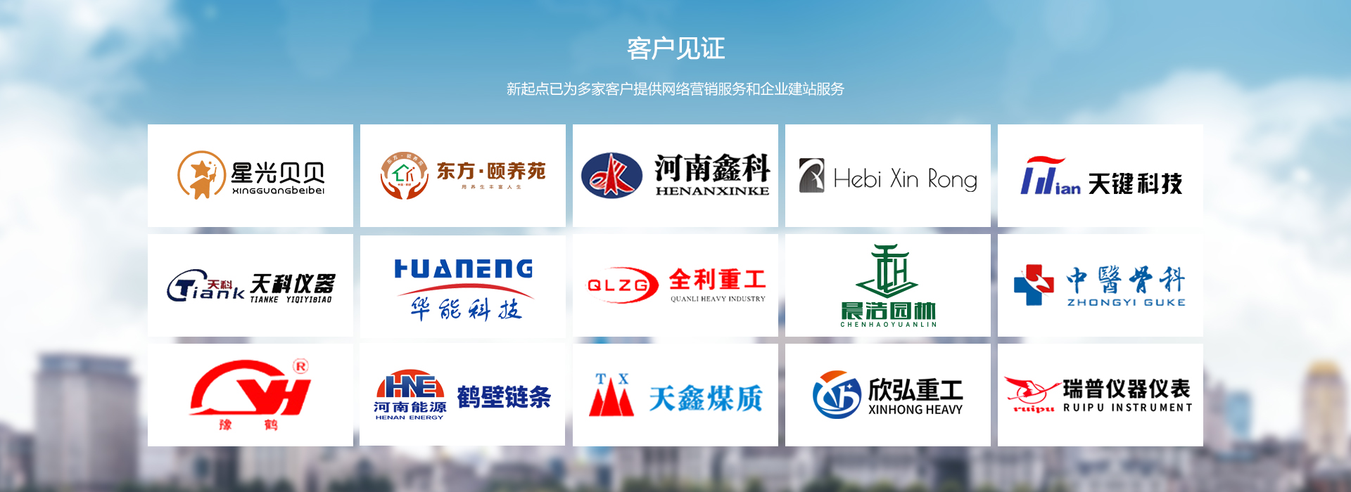 新起点公司10多年互联网经验先后为鹤壁元昊化工、河南天天集团、鹤壁宝马集团 、鹤壁蓝赛、鹤壁中医骨科医院、鹤壁恒力橡塑、鹤壁海格化工、河南鑫科、河南双民环保、鹤壁盛达、河南太行全利重工、鹤壁煤业机械等多家企业单位提供了网络营销服务,在增进客户利益的同时,公司也取得了不俗业绩。